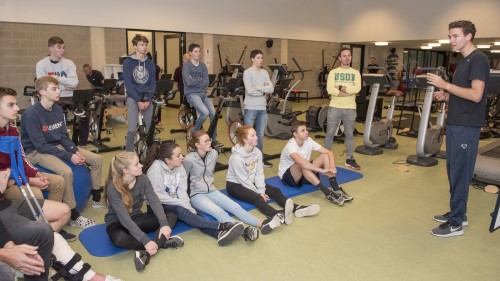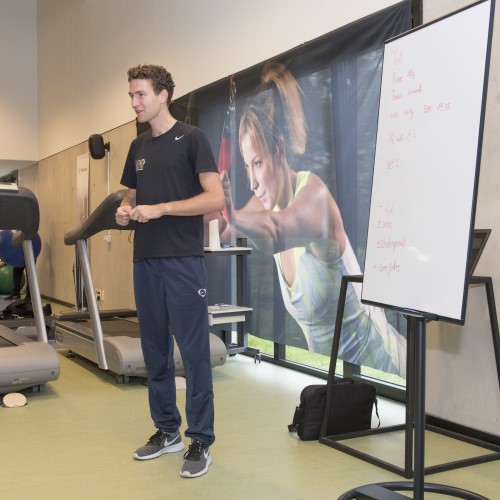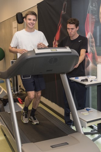 Op woensdag 21 november bezochten de leerlingen van 5 Sportwetenschappen GroepSam te Bree. Kinesist Stef Simons was de leerkracht van dienst om uitleg te geven over de inspanningstest met lactaat- en hartslagmeting. Rune was het proefkonijn en mocht de test starten op de loopband. Rune moest telkens 3 minuten op dezelfde snelheid lopen, waarna de snelheid een beetje werd opgevoerd. Telkens werd ook een lactaatmeting uitgevoerd. Rune begon zo fris als een hoentje, maar naarmate de minuten vorderden waren de aanmoedigingen van de klasgenoten meer dan welkom. Achteraf volgde nog een uitgebreide analyse door de kinesist. Vanaf nu heeft een inspanningstest geen geheimen meer voor deze sportwetenschappers. Bedankt, GroepSam voor de leerrijke ervaring!