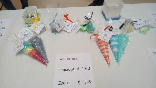 In de laatste weken voor de krokusvakantie openden de leerlingen tijdens de middagspeeltijd de deuren van hun ‘winkel’. Het badzout en de zeep vielen goed in de smaak, want al snel was alles uitverkocht!