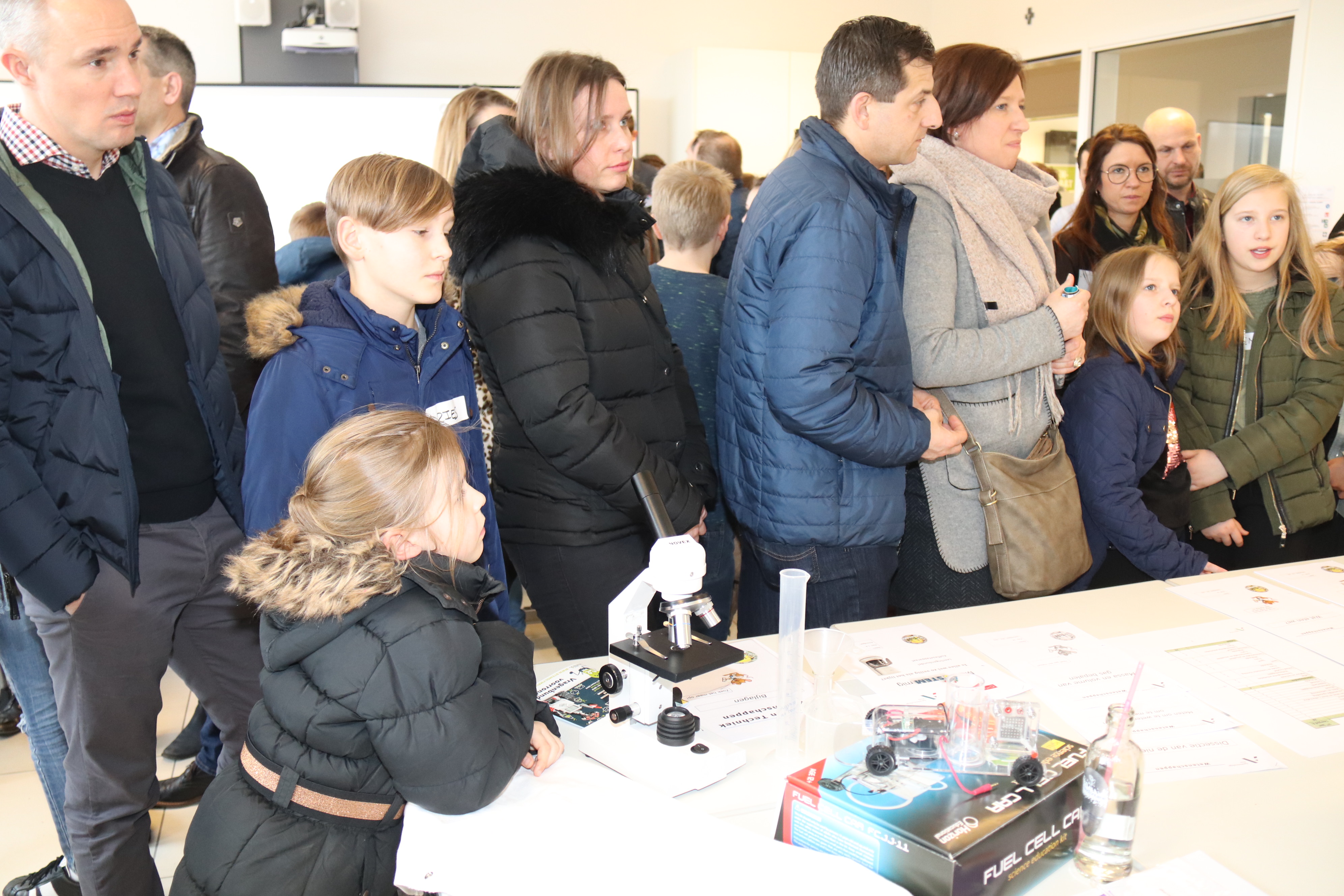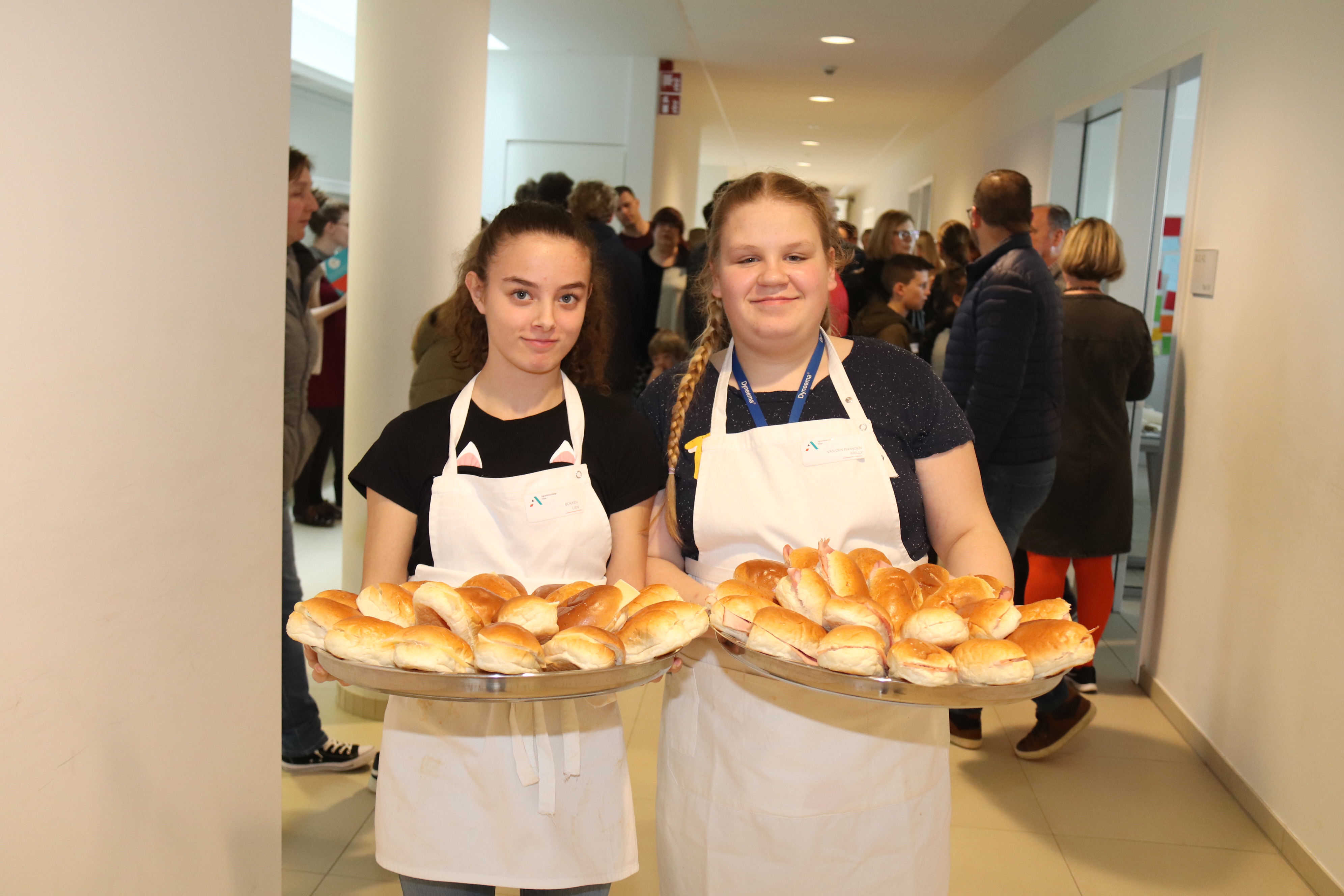 Tijdens de opendeurdag was het een drukte van jewelste in het Agnetencollege: vele honderden bezoekers –waaronder heel wat leerlingen van het zesde leerjaar en hun ouders- kwamen langs om kennis te maken met de school en haar werking. Directeur Lisette Loos: “De vele bezoekers waren heel enthousiast over de ontvangst die ze hier te beurt viel. De studierichtingen en schoolse activiteiten werden immers heel aanschouwelijk uitgelegd: vaak waren het onze leerlingen zelf trouwens die de bezoekers te woord stonden. Zo vertelden Lieke en Pieter van klas 1A5 met veel passie over de lessen ‘taal en actualiteit’. Door de rondleidingen in kleine groepjes bezoekers te organiseren, konden we de leerlingen en hun ouders echt informatie op maat geven.”