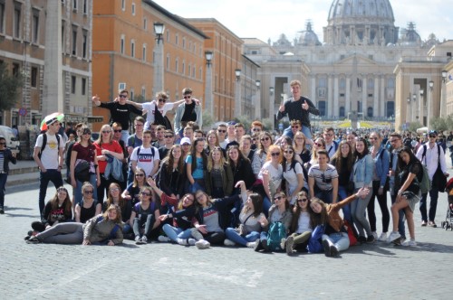 De vierdejaars gingen naar Londen, de vijfdejaars naar Krakau en de zesdejaars naar Rome. Jongeren de smaak van cultuur te pakken leren krijgen, is de doelstelling. Maar we geloven ook sterk in de vormende waarde van de ongedwongen en warme sfeer waarin leerlingen en leerkrachten samen reizen. Onze schoolmascotte ‘Aggie’ reisde natuurlijk mee.