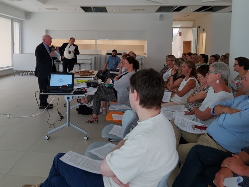 Het personeel werd eerst rondgeleid in de nieuwbouw door een van de leden van de bouwcommissie. Daarna werd de school gewijd door E. H. Jaak Janssen, vicaris voor onderwijs, en E. H. Jef Van De Weyer. De algemene vergadering die daarop volgde, werd uiteraard afgesloten met een receptie, waar geklonken werd op de nieuwe campus en het nieuwe schooljaar. Alle werknemers van het Agnetencollege zijn nu helemaal klaar om de jongeren op 1 september te ontvangen.