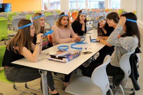 Om onze leerlingen en die van Parchim te stimuleren met elkaar te communiceren, waren er drie activiteiten in gemengde groepjes: een bezoek aan de kerktoren van Peer, een fotozoektocht door Peer en een rondleiding op school. Maar de leerlingen en leerkrachten van beide scholen gingen ook samen aan tafel, er werden toespraken gedaan in het Duits en er werden geschenkjes uitgewisseld. En er was zelfs nog tijd om gezelschapsspelletjes te doen.