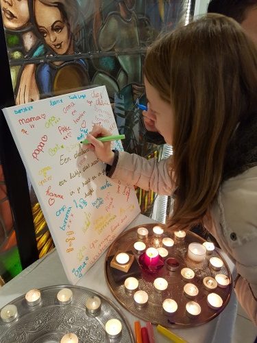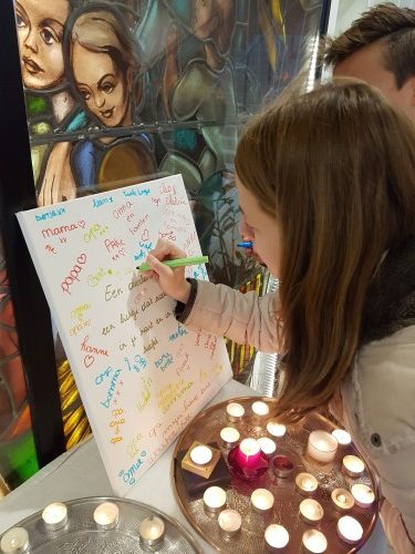 In de week na de herfstvakantie kon al wie dat wou een kaarsje laten branden voor een overleden kennis of familielid. Op een bord kon je ook de naam schrijven van de persoon die er niet meer is. Er werd ook gezorgd voor zachte muziek. Op die manier wou de Pastoraal Dragende Groep iedereen steunen die verdriet heeft omwille van een overlijden.