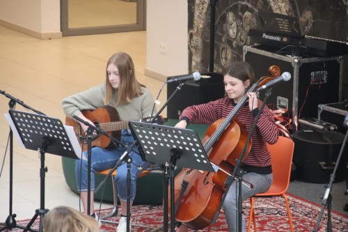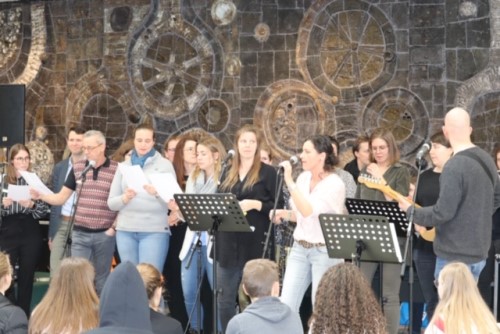 Elke middag krijgen zowel leerlingen als leerkrachten de kans om samen het beste van zichzelf te geven in onze ruime inkomhal. De ene zingt, de ander bespeelt een instrument, terwijl leerlingen uit de studierichting ‘Communicatie en Media’ zorgen voor de presentatie. Ook nemen zij al het camerawerk voor hun rekening, zodat ze na afloop alles kunnen vastleggen in een journaal.