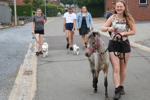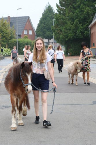 Het begon met een grapje maar werd toch dé afsluiter van het jaar. De leerlingen van klas 5.4B (sociale en technische wetenschappen) kozen er uiteindelijk voor om het schooljaar af te ronden met een wandeling door het centrum van Lozen in het gezelschap van drie pony’s. En de hondjes van Mirthe en Janne mochten natuurlijk ook mee. Origineel, goedkoop, diervriendelijk, sportief maar vooral heel gezellig !