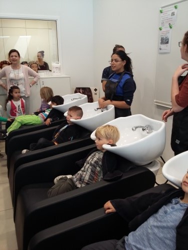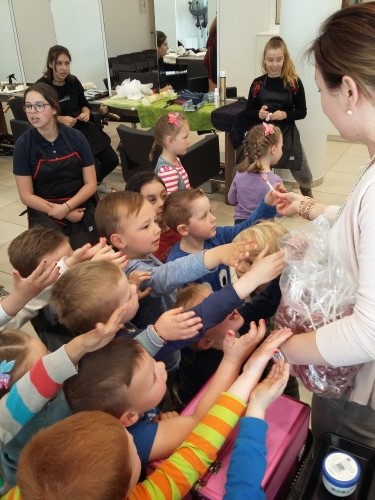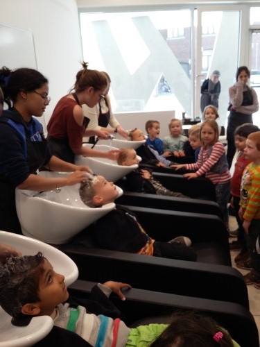 De Kleuters van de mAgneet bezochten op 9 mei het kapsalon van het Agnetencollege. De leerlingen van het derde jaar ‘haarzorg’ maakten hen mooi met vlechtjes, gel en nagellak.