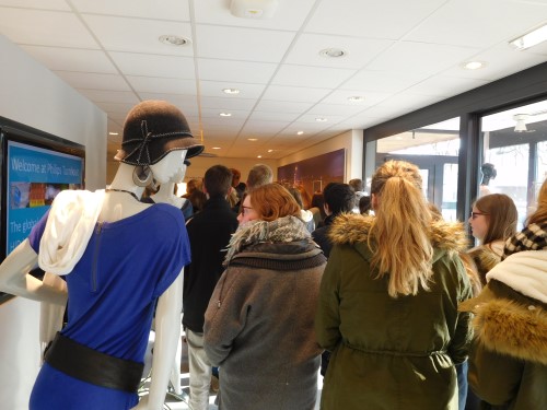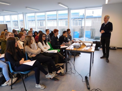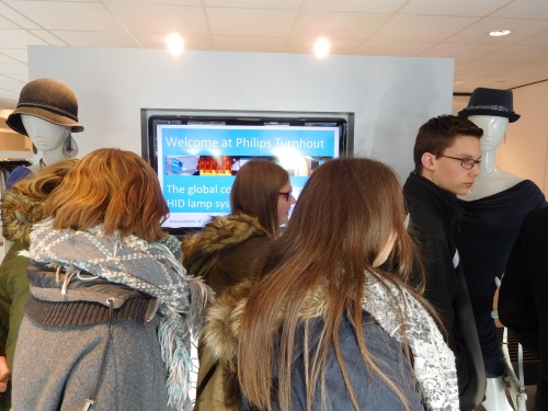 Tijdens de voormiddag bezochten ze de Open Manufactoring Campus (OMC) waar ze een uitgebreide uiteenzetting van CEO Marc Corthout kregen. In de namiddag bezochten ze Philips Lighting. Eerst presenteerden Karel Anthonissen en Yves Diels hoe Philips is ontstaan. De vele lichttoepassingen werden duidelijk weergegeven in filmfragmenten. Daarna kregen de leerlingen de gelegenheid om de productie van de HID-lampen in de fabriekshal te bezichtigen.
