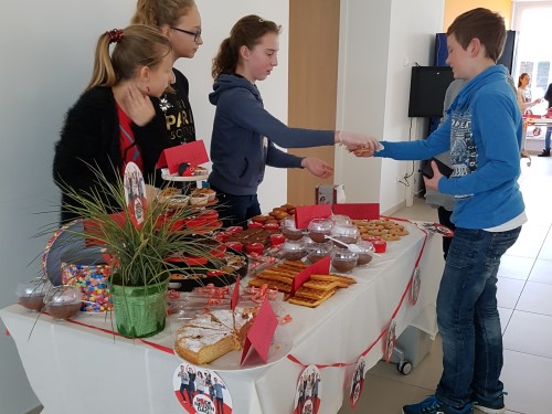 Na het belsignaal ‘s middags stroomden de leerlingen toe en op een half uur tijd was bijna alles uitverkocht! Er werd ruim €300 opgehaald voor het goede doel. Een prestatie om fier op te zijn. Bedankt aan iedereen die zijn steentje heeft bijgedragen!
