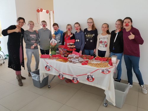 Op 24 november organiseerden de leerlingen van 1A2 “Taal en actualiteit” samen met de vijfdejaars “Communicatie & Media” een Rode Neuzen Actie. Met het ingezamelde geld willen ze jongeren met psychische problemen steunen.