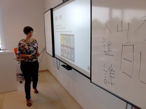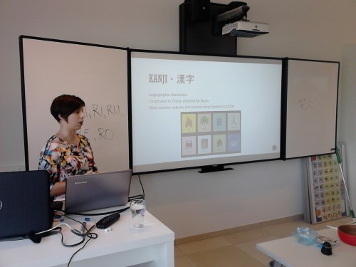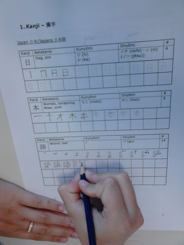 Ze gaf de les volledig in het Engels. De leerlingen leerden van alles bij over het leven van de Japanse scholieren en over manga en anima. Ze leerden ook enkele karakters schrijven en mochten hun eigen naam zoeken in het Japans. Een topnamiddag!