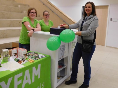 De leerlingen zullen als vrijwilligers heerlijke producten verkopen aan een eerlijke prijs. Tijdens het oudercontact van maandag 14 november vond het eerste verkoopmoment plaats. Ook de eerste grote bestelling is verwerkt: op het einde van de pedagogische studiedag stonden er 115 zakjes klaar in het leraarslokaal gevuld met producten van de Wereldwinkel. Een geschenkje van de directie aan de personeelsleden.